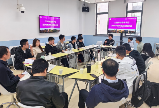 于沙河校区教1-104组织召开2023年春季学期数分课程师生交流座谈会,数分教师贾超华、张奇业、刘敬伟,课程助教、各小班学委代表等共计20人参会。会议由学业助理谢贝贝主持。