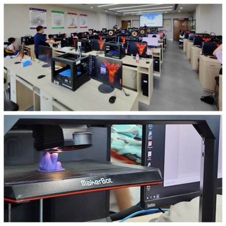 在3D打印实训室,科普老师详细讲解了3D打印技术及其加工流程,并指导学生通过3D打印制作卡通玩具,在实践中加深学生对3D打印技术的了解。