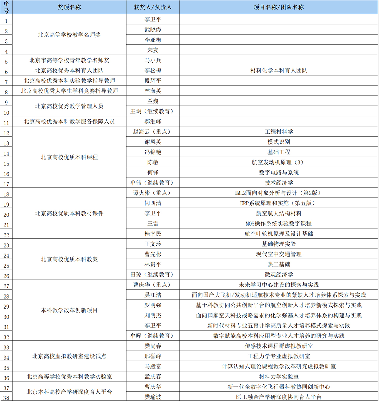 (通讯员 李志珑)近日,2023年北京高校本科教学项目建设评选结果公布,北航工程训练中心办公室主任郝继峰老师获“2023年北京高校优秀本科教学服务保障人员”荣誉称号。