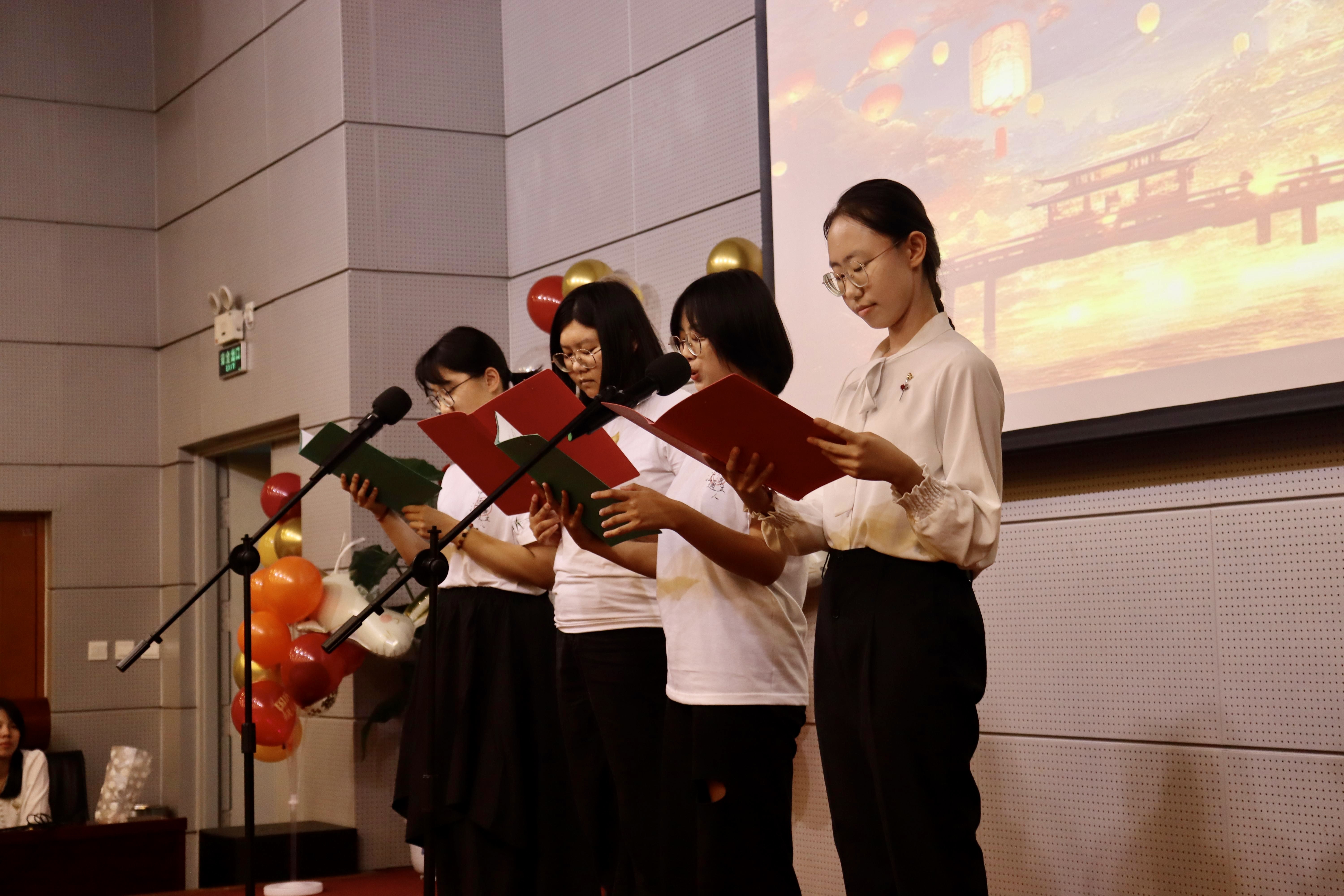 老师、辅导员、导师代表及全体学生共同参与,庆祝双节的到来。