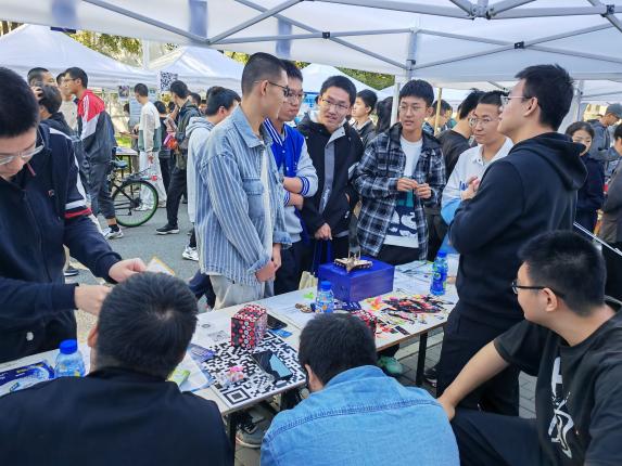 社团招新活动从上午十点一直进行到下午三点,凭借独特的社团游戏和精美的文创礼品引起了同学们的广泛关注。烧脑的二十四点游戏让同学们驻足深思,充满乐趣的“谁是卧底”游戏使摊位上爆笑连连,欢乐的气氛让同学们纷纷停下了脚步,跃跃欲试。