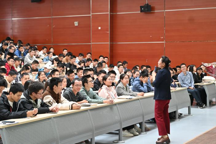 苏教授首先介绍了心理学的学科内容和特点,打破学生对心理学的传统误区,通过对“我是谁”的阐释指出自我认识对自我发展的重要意义,强调要处理好心理社会性发展中的矛盾冲突。面向正值青春的冯如学子,苏教授悉心解答青少年的心理发展任务,指出青少年在自我发展中应逐步掌握生活技能,学会自力更生,化解心底困扰,达到心理与生理的双重成熟。此外,针对青少年在关系中应如何理解与沟通,苏教授为同学们带来“换位思考、自我指向式表达、灵活变通”三大方法,从个体与环境分别介绍了心理免疫系统的发展资源,强调任何事物的发展都不是孤立的,阐释成长共同体的意义。