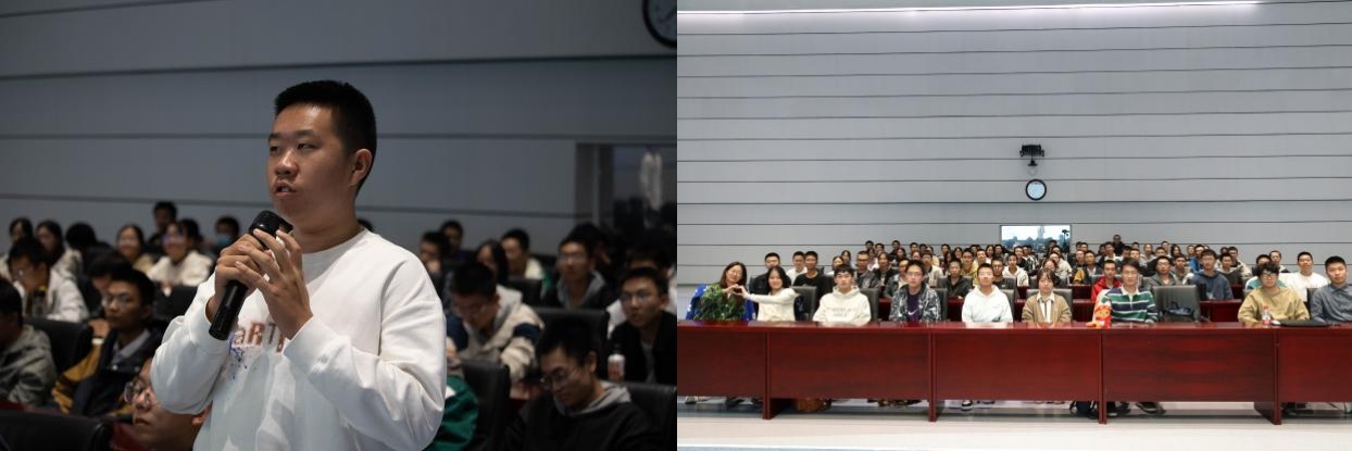 纪鑫以“我和我的北航故事”为题与大家交流。他以时间为轴,讲述了自己的大学经历:大一阶段初步探索,不断尝试,广泛涉猎,明确“我是谁”,进行深入的自我剖析;大二阶段坚定目标,积极参与学生工作,不断积攒科研成果,确定未来行进方向;大三阶段不忘初心,接续奋斗成为生活常态;大四阶段担任兼职辅导员工作,用热情感染更多人,希望更多同学能够将北航空天报国的精神薪火相传。他强调,专业选择的重要性不可忽视。理性的专业选择不仅决定了一个人的职业发展方向,也直接影响着在大学的学习态度、学习成果和成长规划。