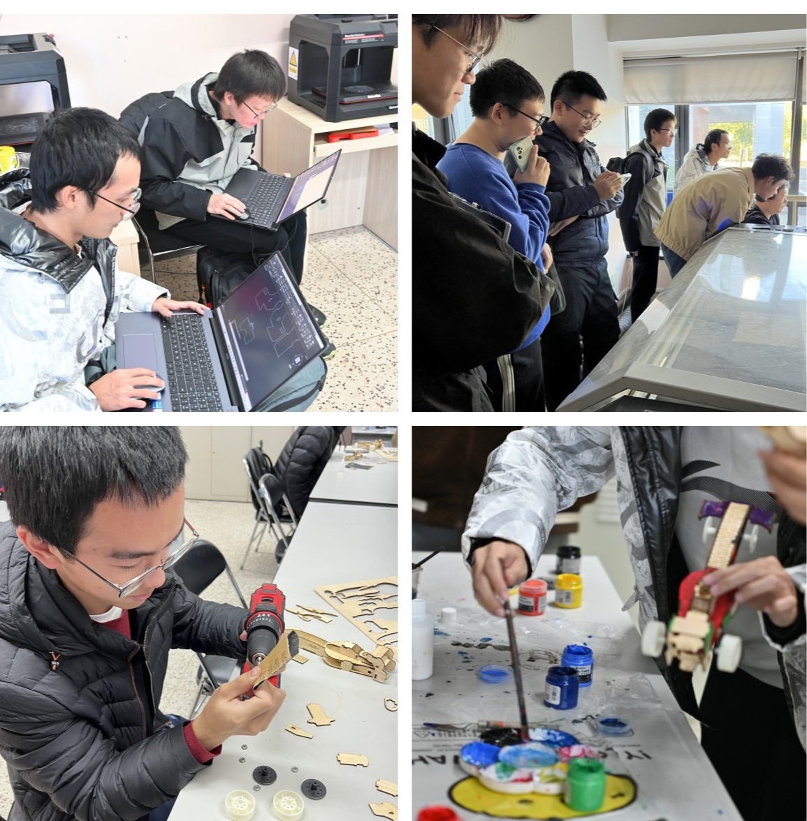 在决赛阶段,选手们需要在限定时间内重新设计小车,并完成加工和组装。同学们展现出了极高的热情和才华,认真投入比赛,争分夺秒,用短短的4个小时完成了画工程图、加工、切割、打磨、组装并装饰小车,每一个步骤都一丝不苟,充分考验了同学们的实践和学以致用的能力。