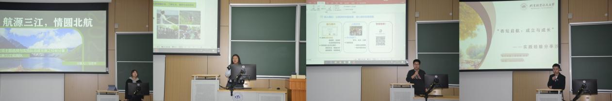 “红旗情愫”香山革命纪念馆暑期实践队、嘉士远航实践队围绕“如何创建实践队”的主题,分享了个人创建实践队的经验,向同学们介绍了实践队的实践过程并积极鼓励同学们创建属于自己的实践队伍。川航e家实践队从“研”“讲”“展”“育”四个方面详细介绍了实践内容,强调了时间队学科交叉特色以及相关实践活动。杏坛启航实践队立足于当今北航的招生现状,为大量高考毕业生提供宣传服务和志愿填报建议,助力广大学子扬帆启航。