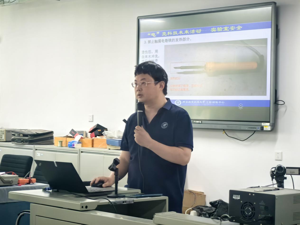 工程训练中心于2024年6月1日举办“电亮科技未来”北京区域科普专项行动主题科普活动,来自北京市昌平区第一中学本部及天通苑校区1+3项目班50余名学生走进北航校园进行科技体验。