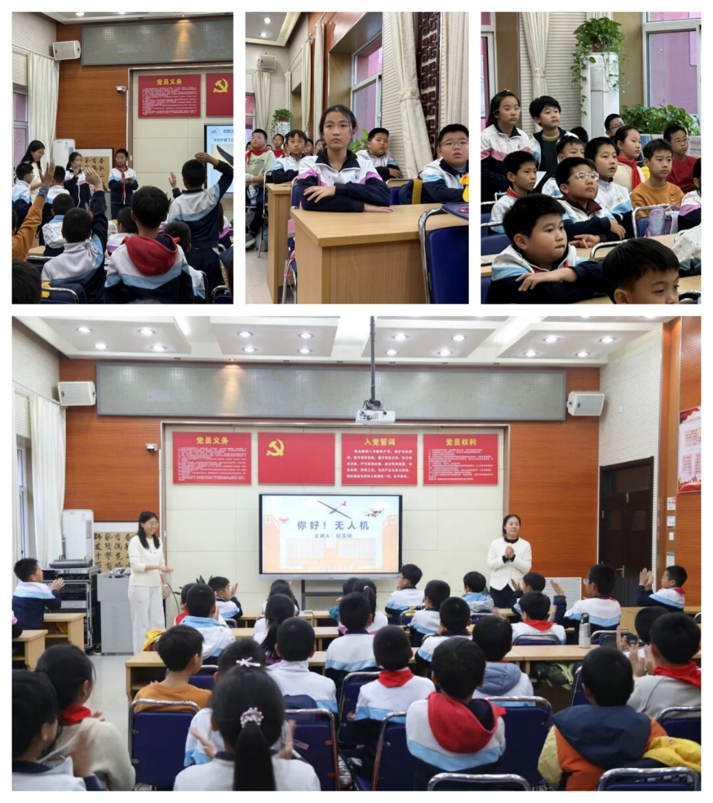 在这堂别开生面的科普课上,邱玉婷老师用孩子们能听懂的语言,将复杂的航空知识化作一个个生动的故事。从无人机如何“看见”世界,到它们如何像鸟儿一样思考飞行,每一个知识点都变成了有趣的探索。孩子们的问题像泡泡般不断冒出:“无人机能飞多高?”“仿生翼无人机是模仿什么动物做的?”“制作无人机需要用到哪些工具?”邱老师耐心地解答,在每个回答中悄悄埋下了科学的种子。