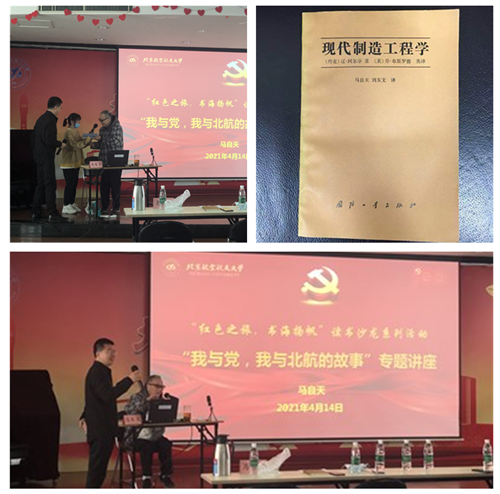 2021年4月14日上午,学院工会邀请工程训练中心现年92岁的离休老党员、长篇传记文学《时传祥》一书的作者、曾与同事用创收为学校建起一栋金属工艺教学楼的马自天老先生,为全院教职工带来“我与党,我与北航的故事”专题讲座,和大家分享“我与党一起成长,为吾校育人树才”的精彩人生。