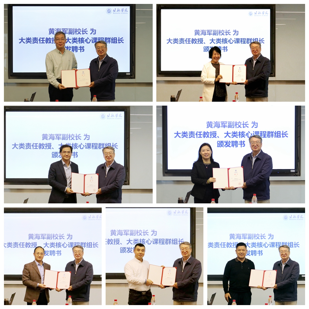 要持续深入推进大类培养及大类核心课程建设,深入研究大类培养与专业培养衔接协同机制,推进学校本科人才培养模式改革,为构建北航新时代高质量人才培养体系打好基础。随后,黄海军为大类责任教授、大类核心课程群组长颁发聘书。