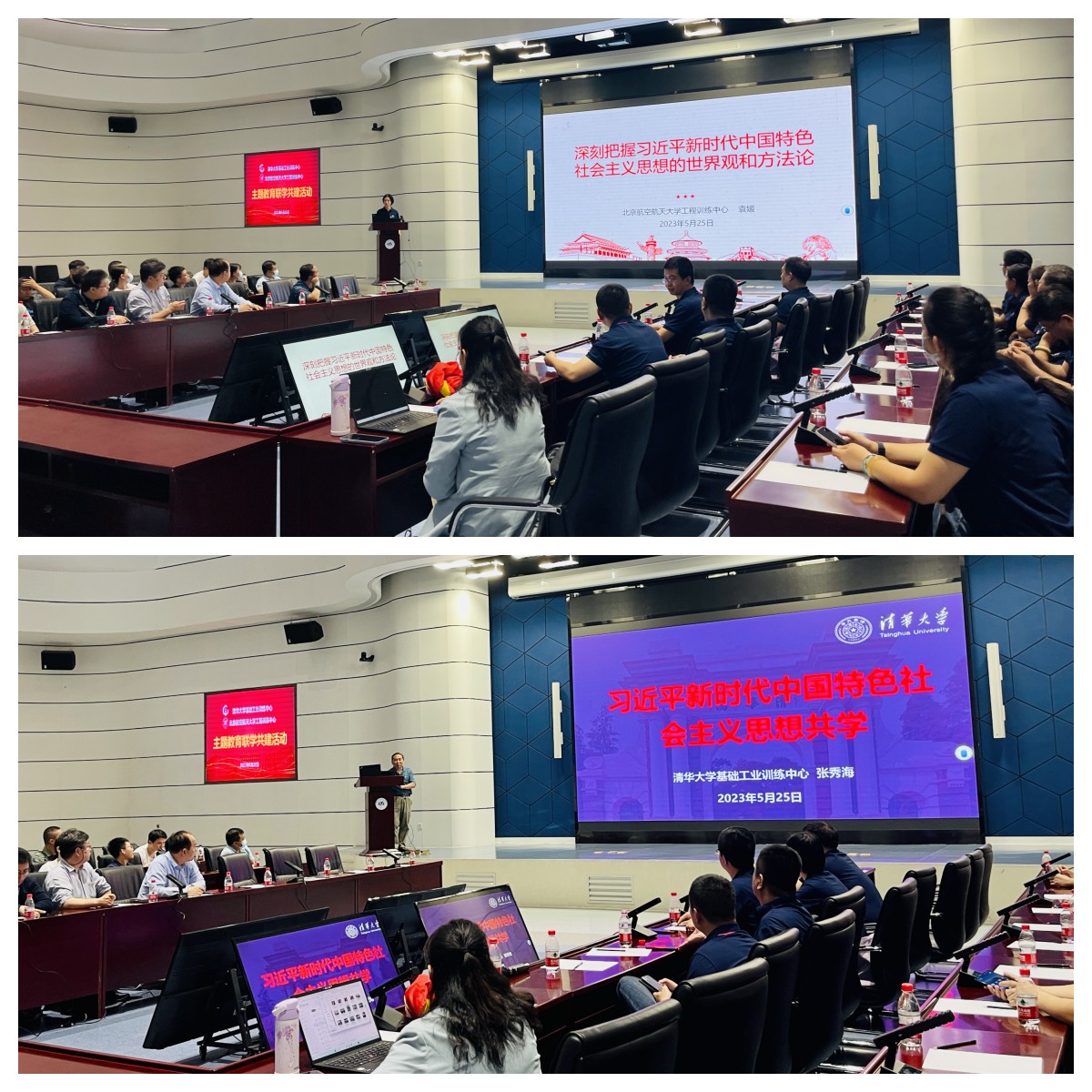 院长、工程训练中心主任刘虎、北航工程训练中心教师党支部书记、中心副主任齐海涛、清华基础工业训练中心副主任杨建新、清华基础工业训练中心党总支副书记、工会主席张秀海、北航工程训练中心副主任袁媛等共50余名教职工参加此次联学共建活动。