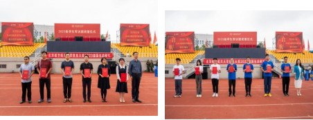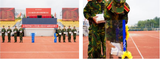 首先,来自专业学院的领导和2023级新生代表为军训指导员赠送纪念品。薄礼厚意,全体新生向各位指导员的关心照顾表达了感激,更表达了对来自各专业学院的指导员的感谢。
