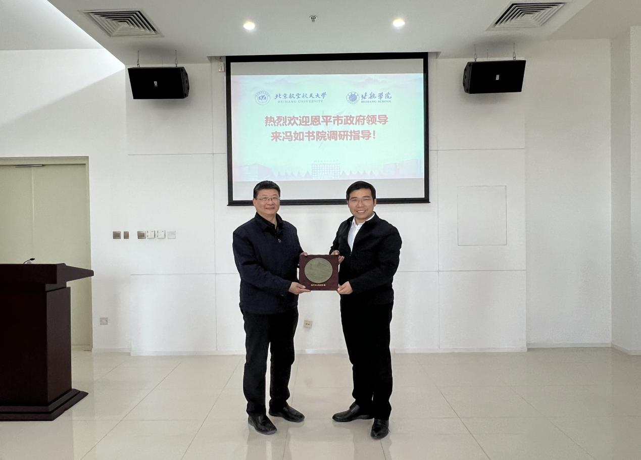 长期以来与恩平市在文化交流、人才培养等方面开展的积极工作表示感谢,并就专项奖学金设立、大学生社会实践、产业就业指导、科技成果转化等多方面提出合作建议,希望双方通过合作充分挖掘高校和地方各自的资源优势,共同擦亮“冯如”文化品牌,助力青少年空天教育科普,为建设新时代航空强国贡献力量。