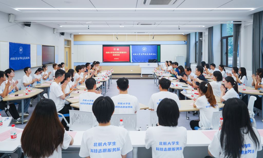 (通讯员 李非 聂鸿宇 郑昊哲)7月5日下午,北航大学生科技志愿服务队2024年出征仪式于学院路校区主南303举行,副校长邓怡、悟空影院