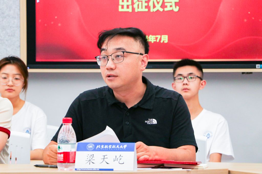 院长刘虎、党政办公室副主任陈伟东出席。出征仪式由志愿服务队指导教师、能源与动力工程学院党委书记董卓宁主持。北航大学生科技志愿服务队指导教师代表和全体队员参加仪式。