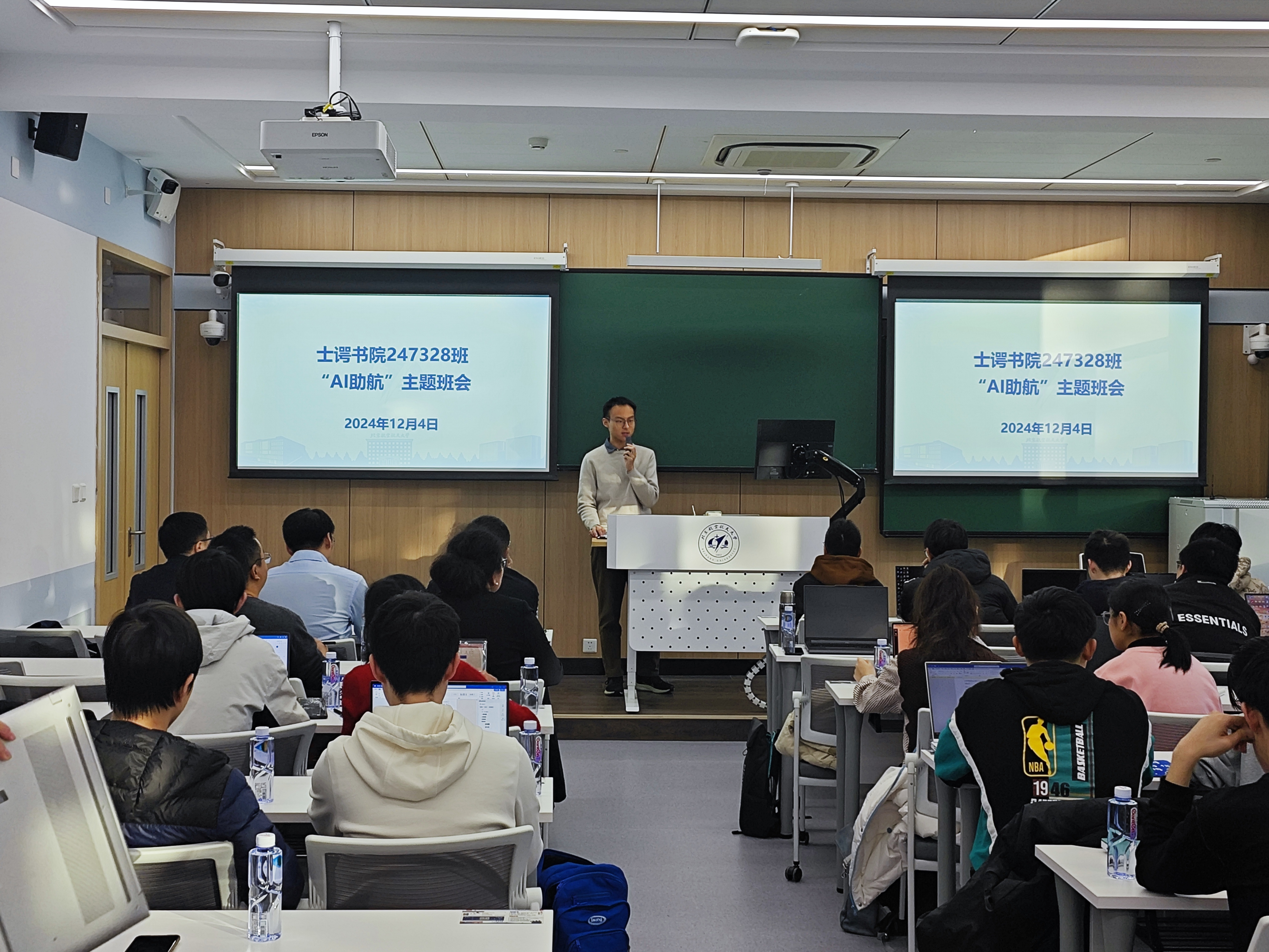 247328班在学院路校区主楼321教室开展“AI助航”主题班会。副校长吕卫锋、悟空影院