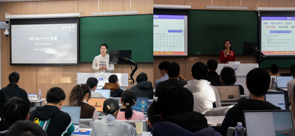班会中首先由助教孙笑寒与洪陈天一为班级同学带来了关于程设Debug方案的讲解。讲解从集成开发环境配置、传统Debug思路和方法以及常见错误情况分析三方面展开,帮助小班学生更好的解决编程中遇到的困难。