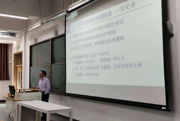 张有光教授从中国移动通信产业发展历程讲起,以3G标准切入,介绍了移动通信中的中国标准。他深刻阐述了规则与标准制定的重要性,讲述了在4G时代,中国标准TD-LTE同欧洲标准FD-LTE的平分秋色,介绍了在5G时代,物联网mMTC、超高可靠与超低时延通信uRLLC等需求的提出。他谈到,当下的5G产业化实质是中国与美国技术标准之争,是贸易战背景下的5G角力。“没有伤痕累累,哪来皮糙肉厚,英雄自古多磨难”,张有光阐述了中兴、晋华、华为先后被制裁的背后故事,系统分析了我国在集成电路领域面临的挑战。