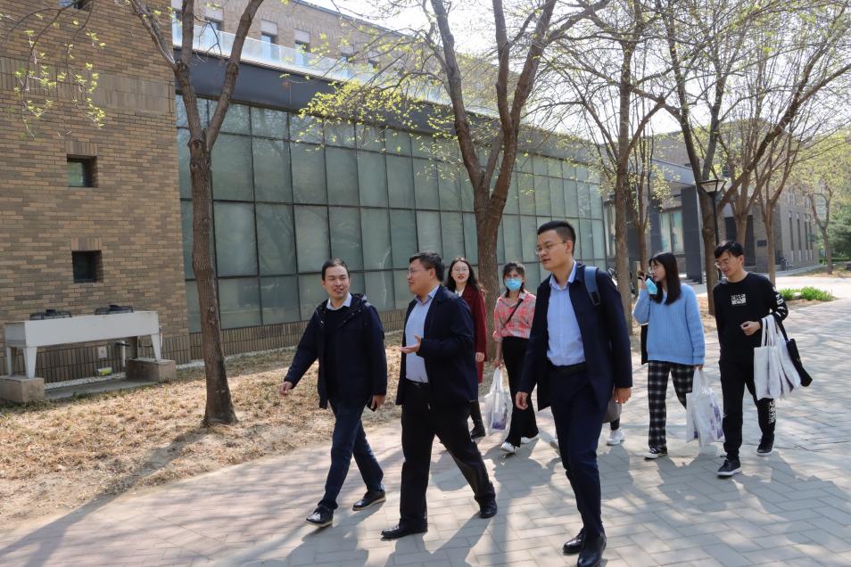 一行参观了中财校园,并对图书馆馆内区域分布和校园布置进行了简要介绍。