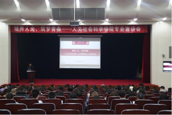 2020级本科生参加宣讲会。宣讲会由人文公管学院分党委副书记张驰主持。