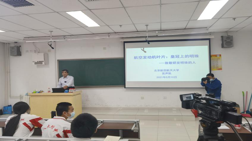 随后,宫声凯为人大附中学生带来题为“航空发动机叶片:皇冠上的明珠”的精彩报告,生动介绍了北航团队在发动机心脏的关键技术科研创新二十年磨一剑的故事,分享了青年学生在未来空天科研实践中应培养的核心素质,着重提出了团队协作的重要性。