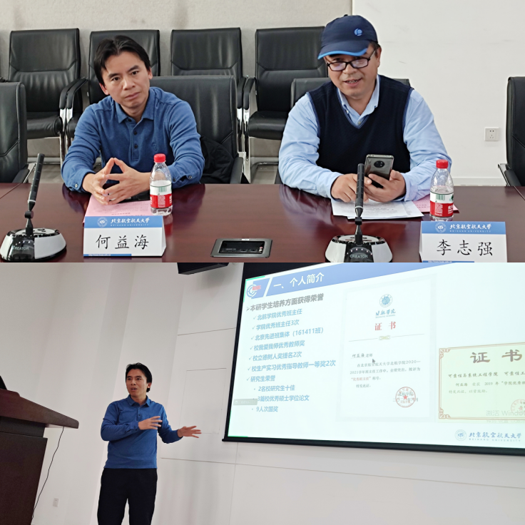 学业助理谢贝贝为参会成员介绍了9-10月份班级活动开展情况。15位班主任围绕“班级学风建设”与“我和我的北航故事”主题,共计开展42次内涵丰富、形式多样的班级活动,切实增强了班级凝聚力。2020级优秀班主任代表何益海与李志强老师分享了各自的班主任工作经验。何益海老师表示,要把班主任工作与个人教学科研工作融合,抓住线上线下一切交流机会,增进与学生的熟悉和信任度。同时,重视学委作用,让班委牵头成立班级各类学习小组,帮扶学业困难学生;李志强老师结合自身带班班主任工作经历,分享了“严格”“包容”“服务”“休闲”八字要点:既要严格要求学业,又要以包容之心提供各类关心关爱服务支持,同时也要让学生注重身体锻炼,以休闲的心态适应大学生活。之后,其他与会人员围绕班级学风建设情况进行交流座谈,积极反馈,畅所欲言。