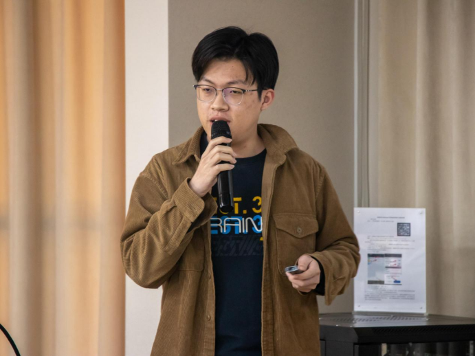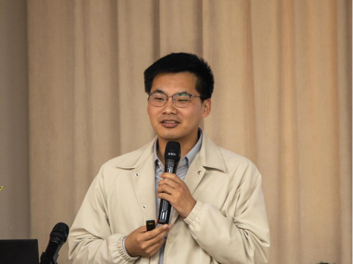 社区管理中心聂佳威向同学们介绍了社区文化节的趣味运动会、宿舍吉尼斯、迎春大扫除等活动,并希望同学们踊跃参加。
