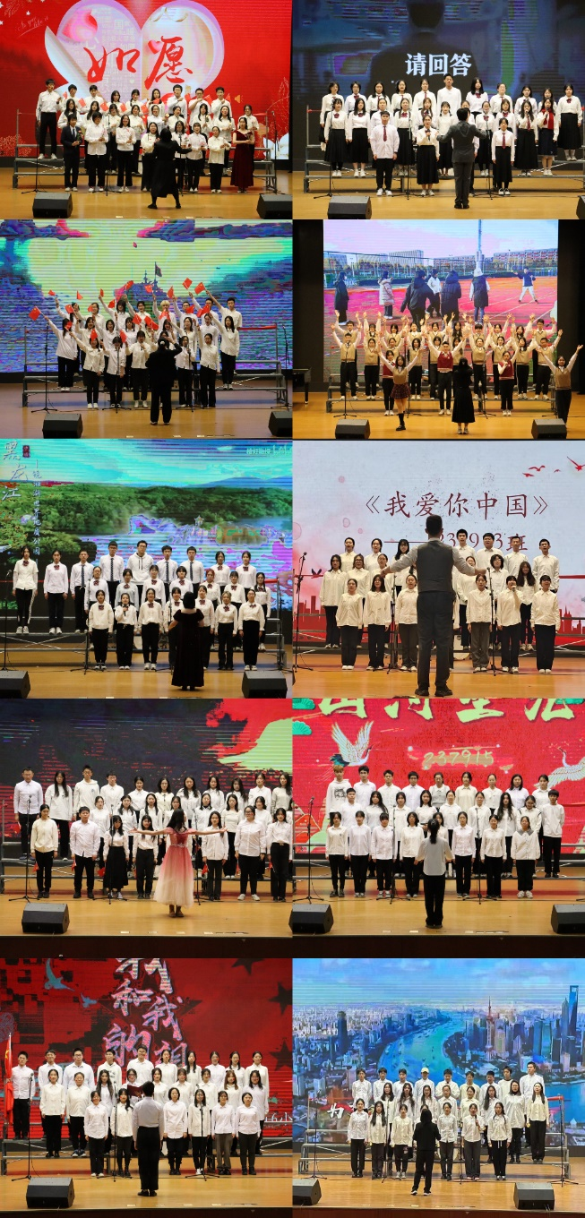 11个小班逐个登台亮相,舞台上,同学们风采卓然。11班同学用《如愿》表达了对前辈们的敬仰和追思;12班同学们把自己对理想的理解注入歌声中,鼓励我们一起朝着理想飞翔;在13班同学的《我爱你中国》中,千言万语汇成对祖国最热忱的表白;14班同学们悠扬青春的歌声回答了“中国的模样”;在15班同学们的歌声里,爱国情怀细腻可感,流连于山河星光中;16班的同学们歌唱《我和我的祖国》,将对祖国的满腔热情投入音符之中,伴以舞衫歌扇,给人以视听享受;家与国的密切联系在17班同学的《家国》中体现得更为深刻;18班同学用一曲青春洋溢的《我们都是追梦人》刻画出每一条追梦路上的汗水挥洒、铿锵步伐;21班的同学们一曲《万疆》,唱出了自信自豪,唱出了自立自强;23、24班的同学们用嘹亮而有力的歌声赞颂中国共产党,大气磅礴,深情温暖。最后,比赛在铿锵的旋律中落下帷幕。
