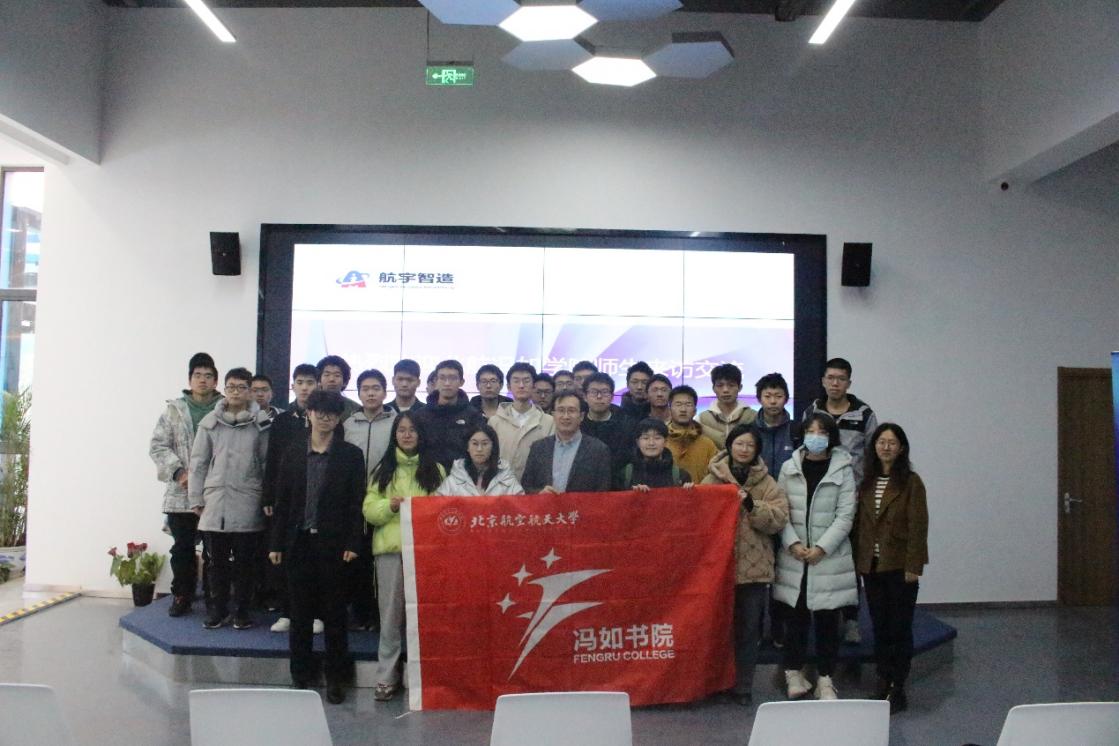 师生前往校友企业航宇智造集团开展“企业行”校友沙龙活动。航宇智造集团创始人、北航校友程鹏志博士作交流分享。