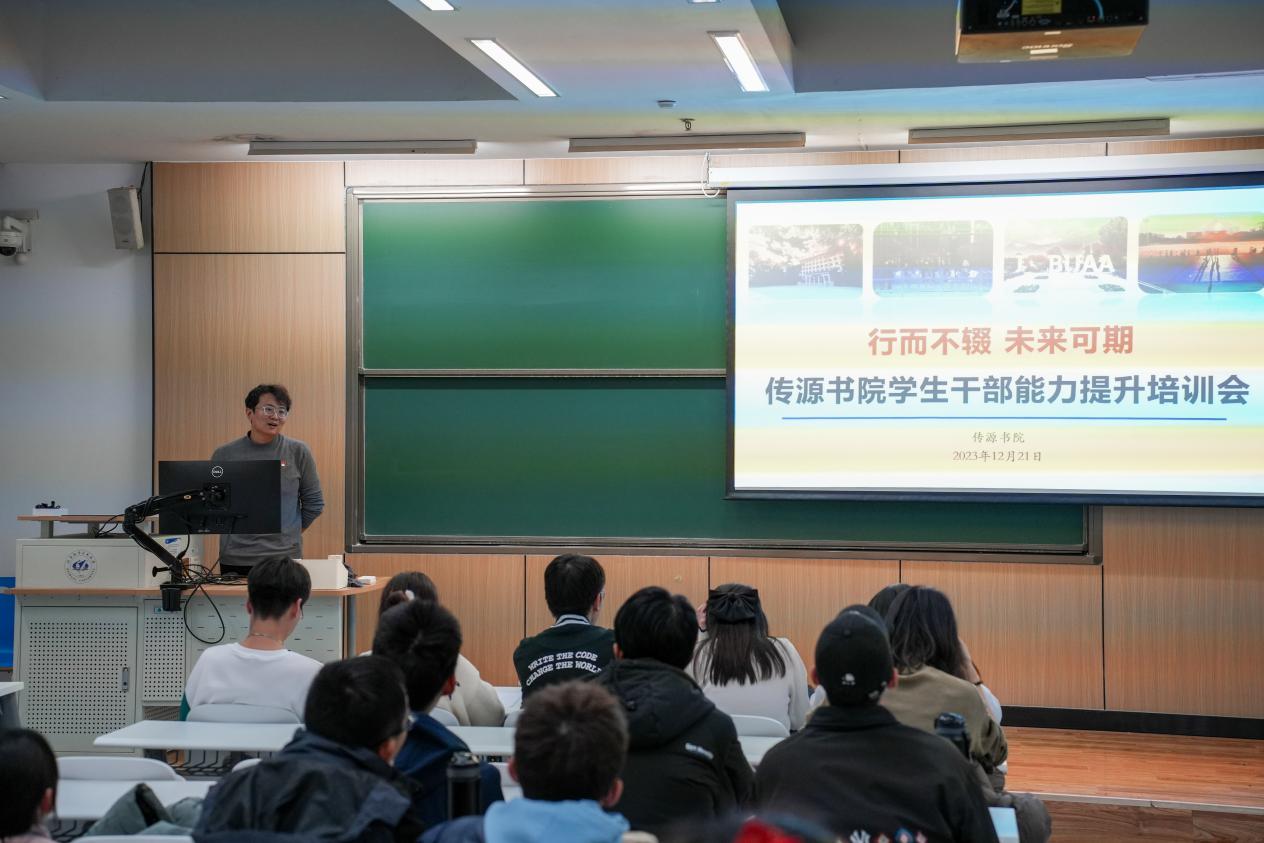 (通讯员 孙志成)为了更好总结本学期学生工作成果,进一步加深班干部间沟通交流,提升书院学生干部工作能力,传源书院于12月21日晚20:00举行了学生干部能力提升培训会,各大班辅导员与全体大班委参会。