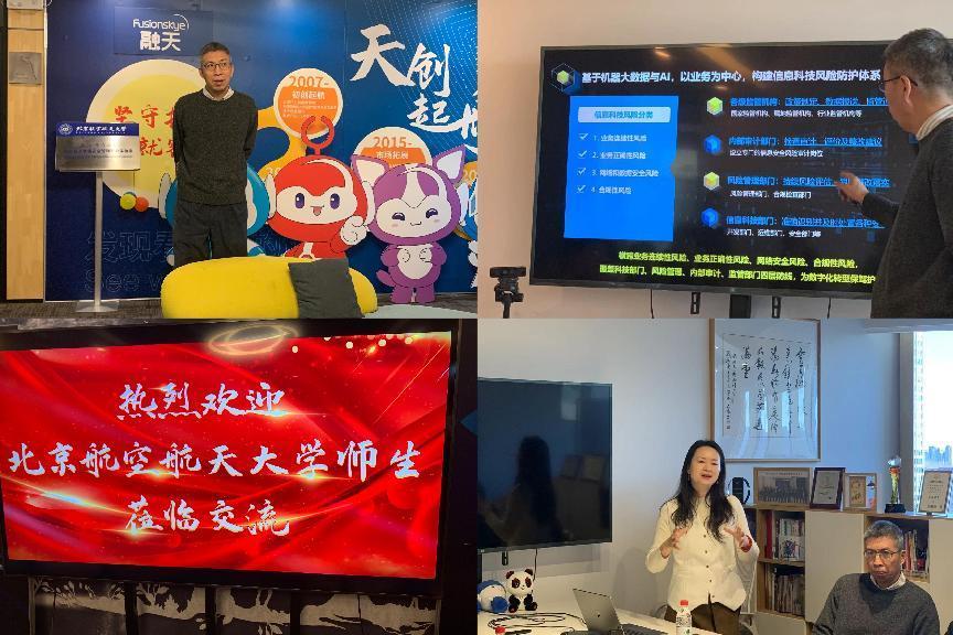 华青融天的包彤先生为实践队队员们分享了华青融天信息科技风险治理解决方案及技术发展趋势,详细展现了华青融天的理念以及科技实力,并且向队员们深入剖析了信息行业专业发展趋势,深化了队员们的专业认知,增长了队员们的本领才干。队员们也就当今热议的大数据人工智能等与其展开深入的交流。