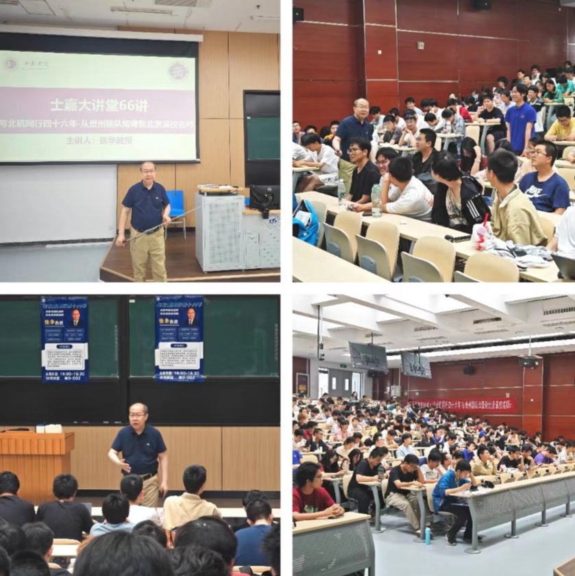 于沙河校区教0-002举行士嘉大讲堂第66讲。北京市高校教学名师、北航老教授报告团成员张华教授做《与北航同行四十六年—从贵州插队知青到北京高校名师》报告,悟空影院