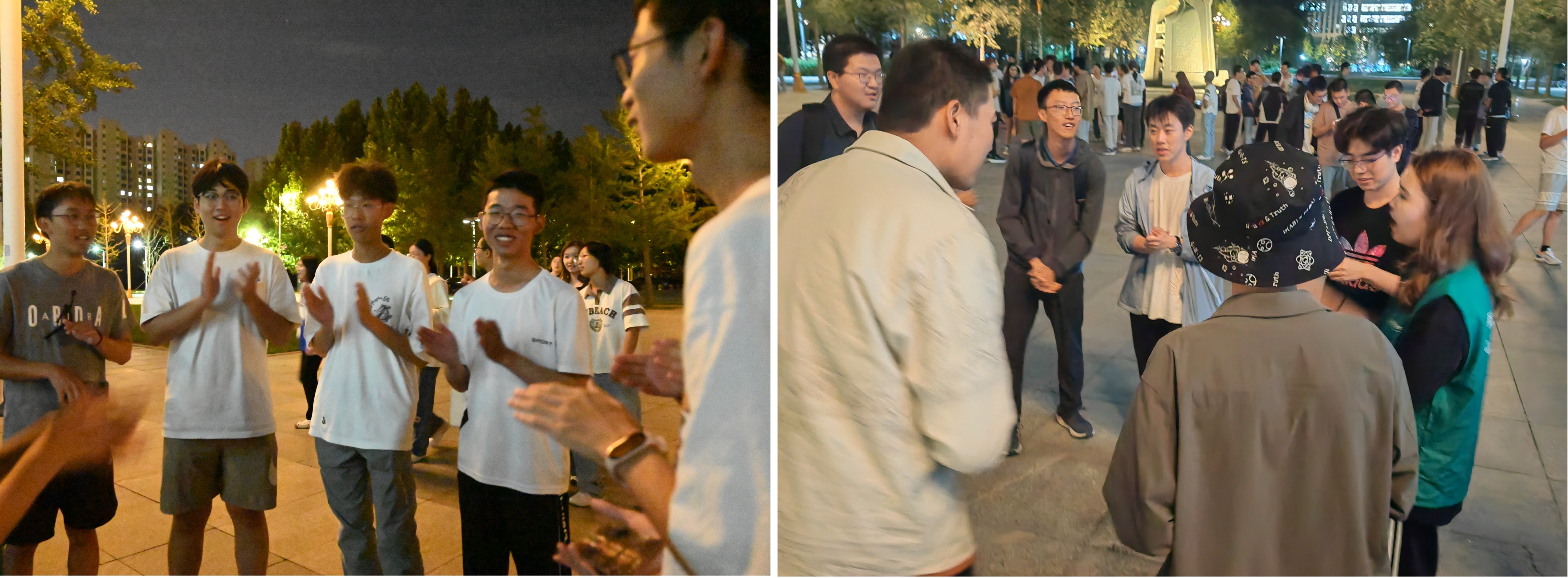 外场活动在大钟广场进行,由书院精心组织了五个富有创意的互动游戏组成,如“月饼拼盘”、“逛三园”、“你划我猜”等。致真梦拓带领组员一起完成游戏集章,在竞技互动中开怀大笑的同时,拉近彼此距离,在月色下留下美好回忆。