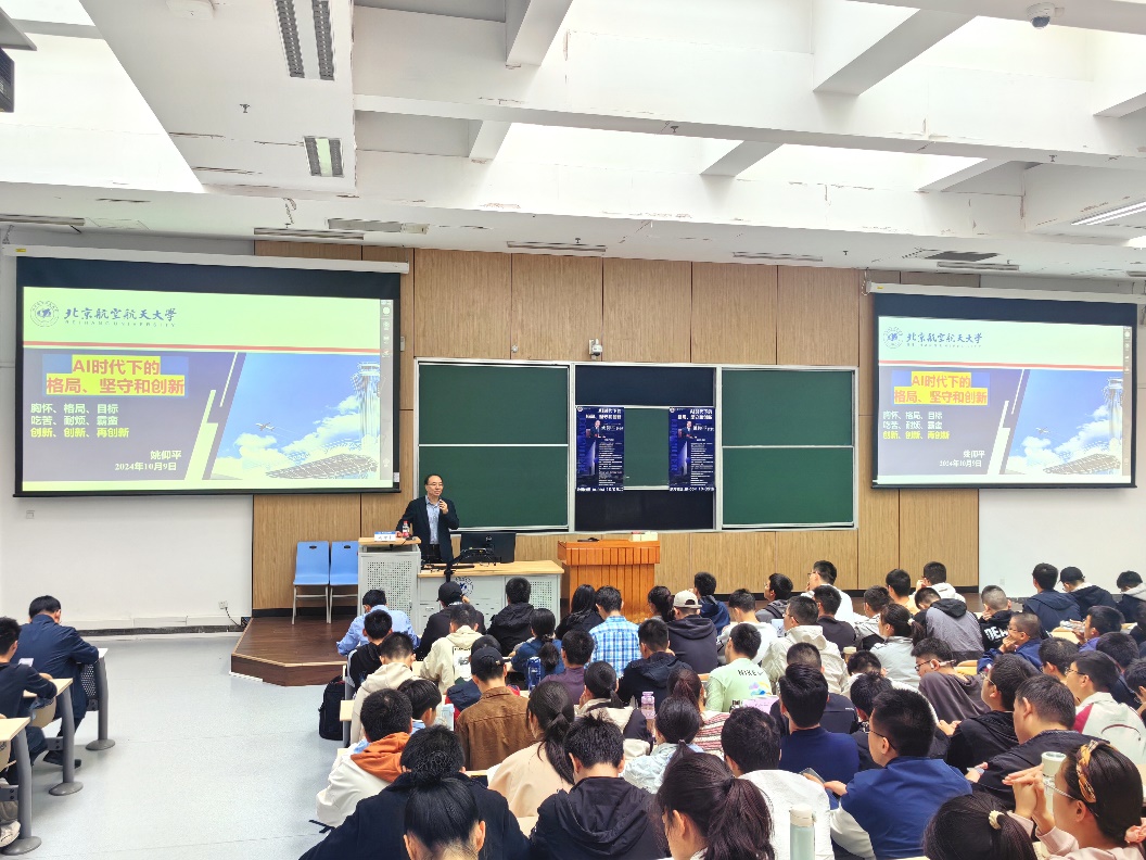 院长姚仰平教授在沙河校区J0-004为书院2024级新生做新学期“士嘉大讲堂”首场报告——“AI时代下的格局、坚守和创新”。2024级全体学生和书院执行团队成员参加了学习。
