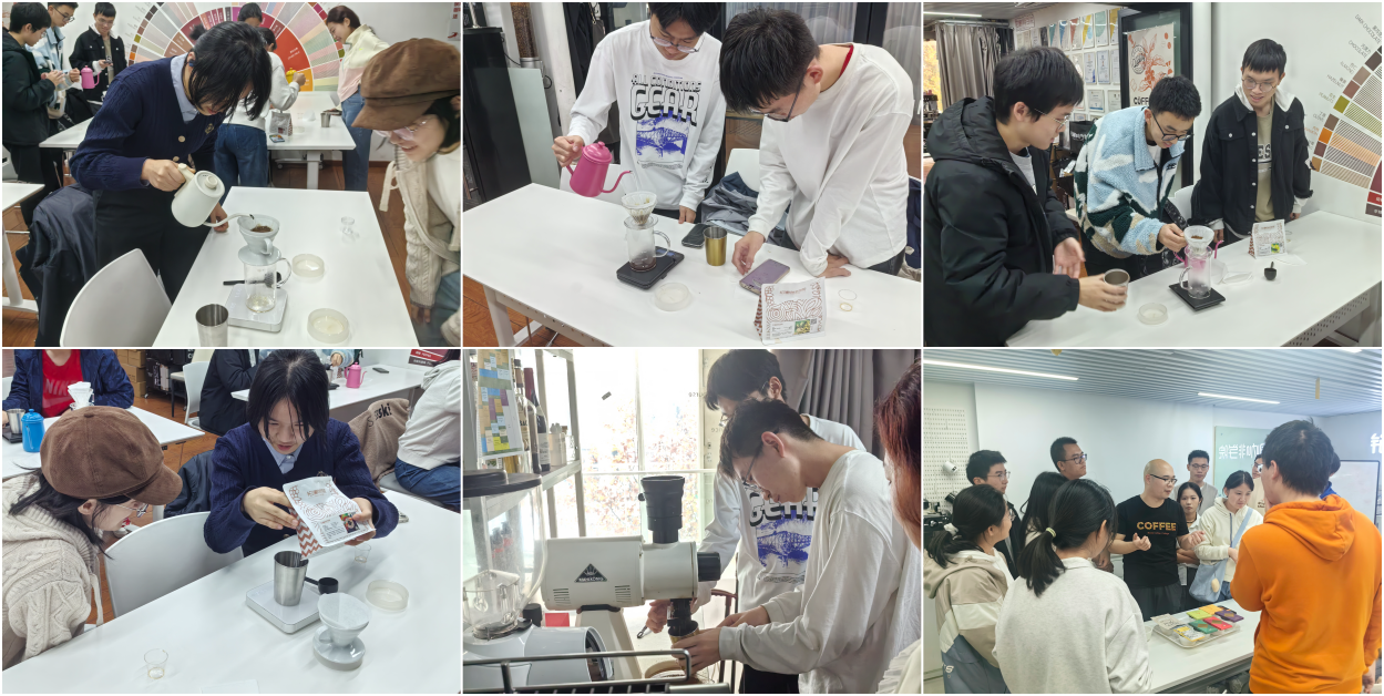 《铂澜精品咖啡》课程的老师带领一部分同学从亲身体验的角度鉴赏咖啡,自己动手去尝试香浓醇厚的咖啡制作过程。同学们通过亲自动手体验冲泡咖啡,了解学习咖啡相关知识,提升多元文化素养及品位,在兴趣驱动下体会高雅,在悠闲惬意中习得技能,在与同学们的分享中增进关系。