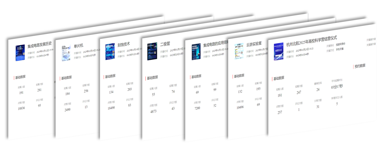 据统计,寒假直播活动共计6场,直播总时长300分钟。共获赞超6万次,观看人次超1300人,评论数350余条,分享次数近百次,新增关注28人,在微信视频号、哔哩哔哩等平台均获得了良好的反响。观众纷纷表示,通过这次直播活动,他们对集成电路有了更深入的了解,也激发了他们对科技创新的兴趣和热情。