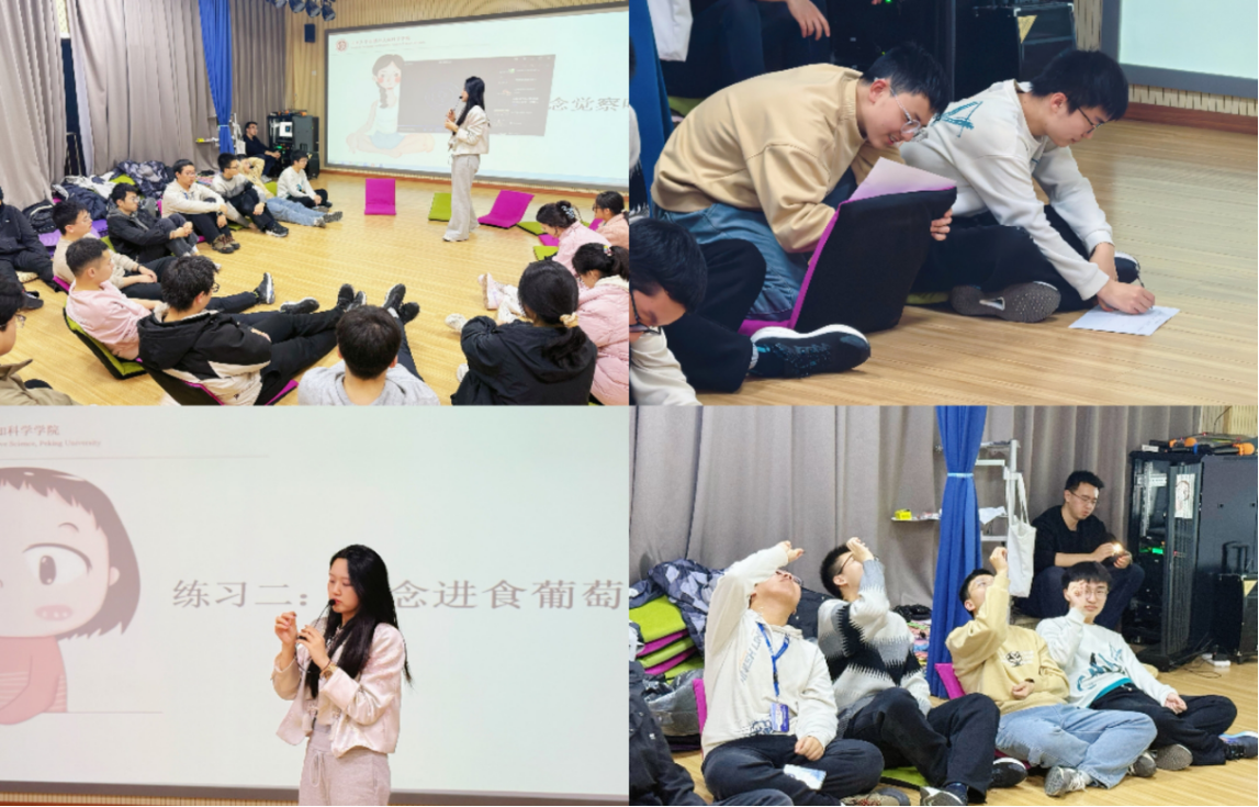本次活动由中国心理学会心理咨询师刘嘉宝老师主讲,采用理论与实践相结合的方式,引导学生深度探索正念的内涵与应用。活动伊始,刘嘉宝老师通过具体案例,生动诠释了正念的现实价值。在老师的专业指导下,同学们完成了“正念觉察呼吸”与“正念吃葡萄干”的体验活动。刘嘉宝老师深入浅出的讲解,让同学们深刻理解了正念的科学性和实用性。在“幸福感小练习”环节中,同学们分享了各自生活中的美好瞬间,进一步体会到正念在日常生活中的重要意义。