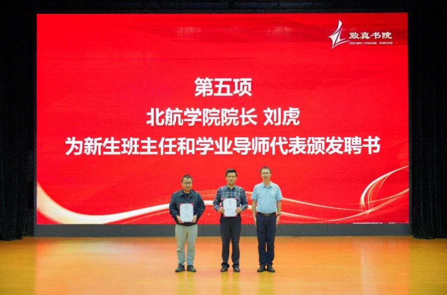 院长刘虎为新生班主任代表和学业导师代表颁发聘书。