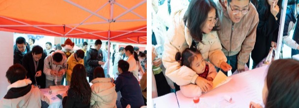 “航续华章”主题摊位同样亮点纷呈,精准呼应北航“空天特色”。“‘纸’向蓝天”纸飞机折叠活动中,参与者充分发挥创意,折出形态各异的纸飞机,当承载着航天愿景的纸飞机在空中翱翔时,不仅展现了北航学子的动手能力,更成为北航人“空天情怀”的生动写照;“笔墨留声”寄语环节更添温情,师生与校友在便利贴上写下对学校的祝福与期许,这些寄语将由书院统一封存,待 2026 年校庆时启封,让这份对北航的深情实现“跨年度传承”。