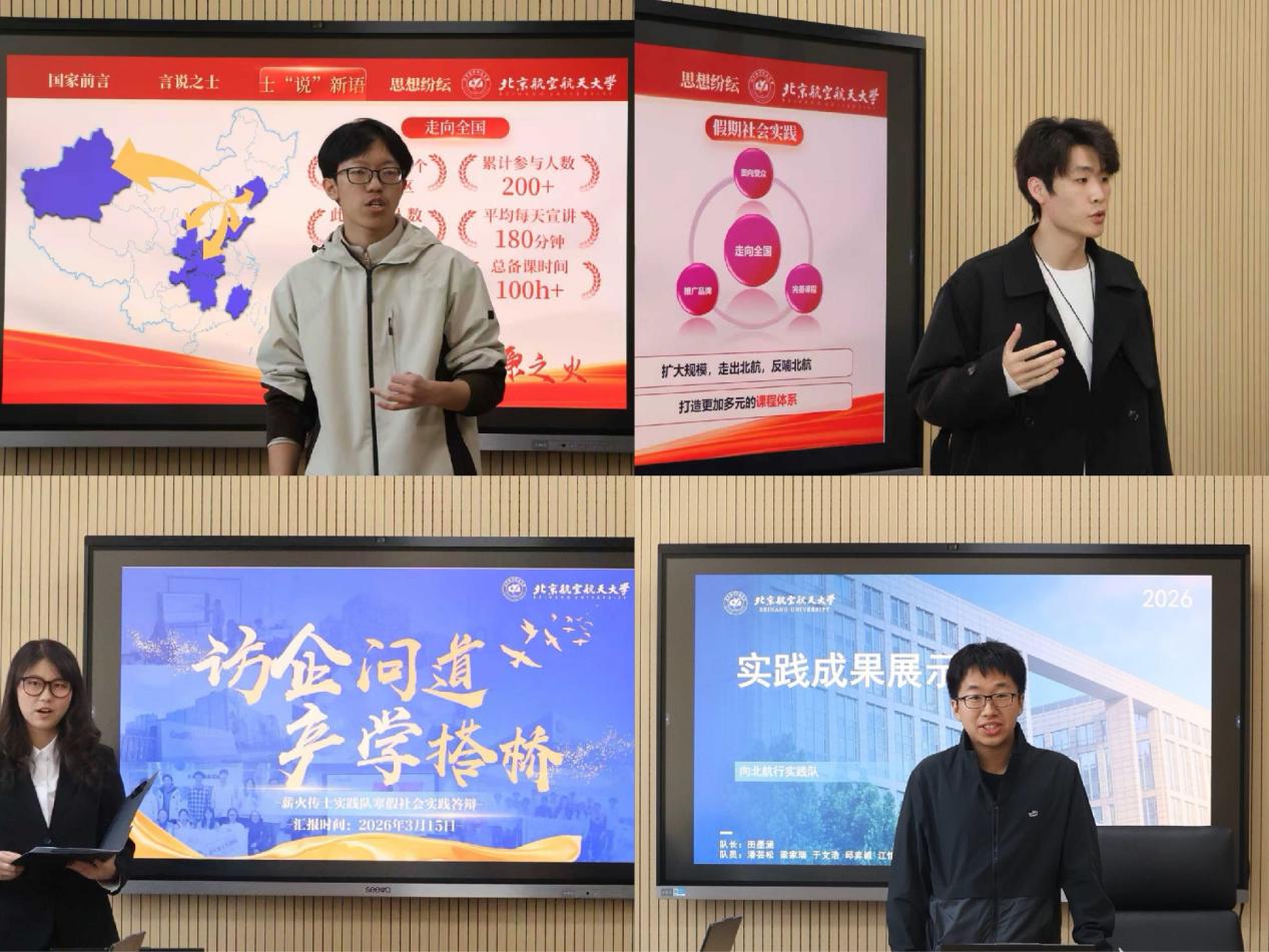 激荡多元思潮,以科教播下年轻一代的梦想。士说纷纭实践队坚持科教兴国、人才强国、创新发展战略,打造多元原创课程体系,携士谔故事、北航风采走向全国,为年轻一代埋下信息的种子;薪火传士实践队以科教协同、校企协同为核心定位,走进企业一线进行访学参观,以实践传承兴业之魂;向北航行实践队回访母校北京中学,阐述北航历史,回望辉煌成就,在同学们心中根植远大的航天梦。