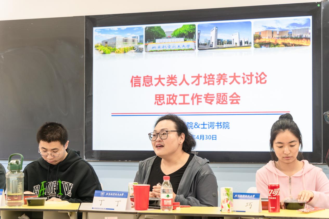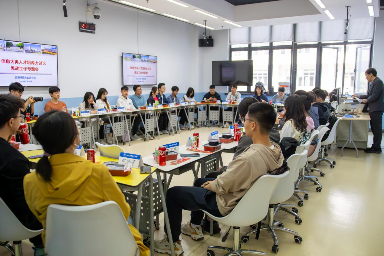 于4月30日中午12点在沙河校区J1-103,联合召开人才培养大讨论思政工作专题会。两书院执行团全体成员、各大班学生骨干代表共同参与。座谈交流主题涵盖信息大类书院同学们日常学习生活方方面面,并和思政教育充分融合。