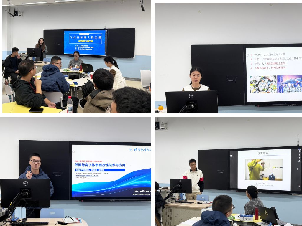 活动伊始,四位导师分别向大家清晰介绍了自身的研究方向与核心内容。航空科学与工程学院包佳仪导师从“飞行器环境人机工程” 解读了航空航天人因工程,围绕 “人 - 机 - 环” 系统阐述研究重点,该成果为航天器座舱设计、航天员防护装备研发提供支撑;航空发动机研究院李磊导师聚焦航空航天领域的核心难题 ——“发动机燃烧不稳定性”问题,介绍了其研究背景与科学意义。目前团队正通过试验与测试手段探索规律,为提升发动机燃烧稳定性打基础;机械工程及自动化学院韩明月导师聚焦 “低温等离子体表面改性技术与应用”,为大家系统介绍了北航先进表面涂层技术实验室及其研究成果;生物与医学工程学院吴欣童导师则围绕“空间微重力下骨细胞力学调控机制”,结合 NASA 研究揭示太空飞行对航天员的影响,重点分享 “神十六” 在轨实验成果,为解决空间骨丢失问题提供依据并形成技术方案。