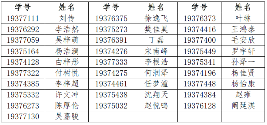 经学生申请、书院审核、学院初审、专家面试考察后讨论决定,拟增选下列学生为高等理工学院(沈元荣誉学院)2019级荣誉学生: