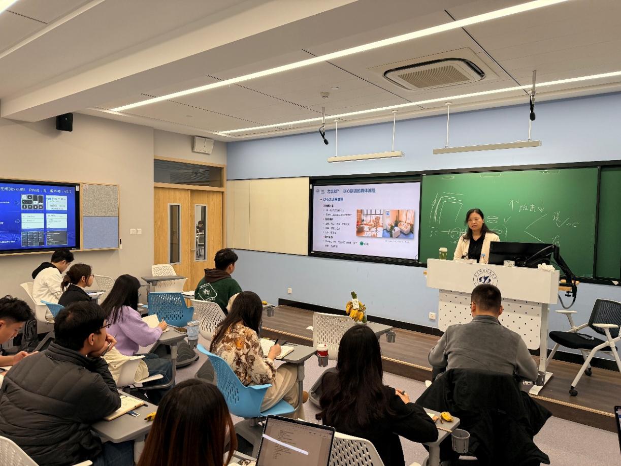 在“跟谁谈”部分,冯老师指出,辅导员应结合心理普查结果与学生日常表现,确保工作更具针对性与实效性。在“谈什么”部分,她从社会功能、情绪状态、压力水平、社会支持等维度展开分析,强调辅导员要注重倾听与共情,帮助学生缓解情绪、增强自我调适。在“怎么谈”环节,冯老师介绍了谈心谈话的基本流程,包括建立关系、澄清问题和引导支持三个阶段,并提醒辅导员在谈话后及时记录要点、做好后续跟进。